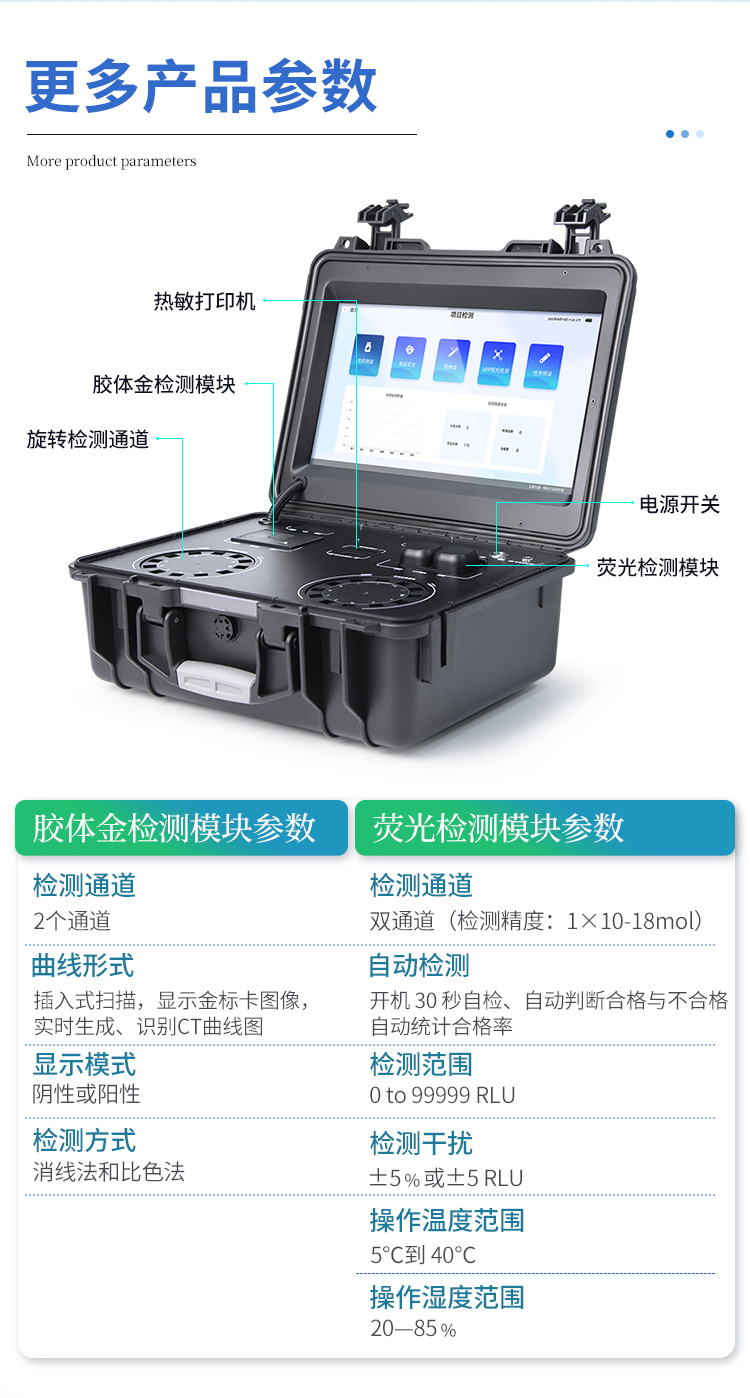儀器采用臺式一體化系統檢測技術,將分光光度模塊、膠體金檢測模塊、新型農殘檢測模塊、數字化管理模塊、無線通訊模塊高度集成于一體,支持檢測200種食品安全檢測項目,同時預留升級檢測方法。儀器檢測模塊標準化、智能化,可隨意自由組合。檢測箱體內置多個標準檢測單元,檢測模塊可以調整配置。 儀器采用全新安卓智能系統,主控芯片采用 ARM Cortex-A7,RK3288/4核處理器,10.1寸高清液晶觸摸豎屏,更加**的UI交互界面,運轉快捷;儀器配備無線通信模塊: 4G(APN)通訊模塊、Wifi模塊,藍牙傳輸,同時具有雙USB接口以及RJ45接口能以多種方式實現數據保存和數據傳輸功能。創新檢測模式★檢測通道:≥12通道;采用精密旋轉比色池設計,使用同芯片同光源校準精度,解決不同光源之間的誤差值。1-12通道間誤差0.1%。(**號:ZL202022821055.2) ★儀器具有自動識別比色皿檢測功能,即:將樣品比色皿放入儀器后,點擊樣品檢測,儀器自動識別比色皿進行通道檢測。進口高精光源:高精度進口四波長冷光源,通道配置 410、520、590、630nm 波長光源,一個光源芯片驅動一個光源,誤差極小,每臺設備單獨**校準光源,**比對,同時參照四種不同波段光源全方位覆蓋市面上99%的農殘食品項目檢測。膠體金模塊檢測方式:★采用COMS實時成像技術,可采集多個畫面,支持2個金標同時讀卡,通過不同顏色的灰度變化,一秒精準得出結果。智能操作分析系統:★便捷操作系統:設備檢測時可在同一檢測界面自動對應相關檢測通道一次性選擇1-12個樣品名稱,無須退出界面,節省操作時間。(需提供對應證明) ★數據集成系統:設備首頁自動統計檢測數據包含:周檢測數據、月檢測數據,全部檢測總數量,均包含檢測總數,合格數,不合格數,以及相關柱形分析圖,對各項檢測數據清晰掌握,無需電腦查詢,更加快捷直觀。(需提供對應證明文件)★項目預設系統:支持添加單個及多個相同或不相同的任務預設,一鍵快速調取,每一個任務分別可以設置不同的樣品、批次、編號、來源、備注、抽樣信息、檢測信息、受檢信息、復核信息等更多信息。無縫鏈接平臺和APP實時查看下發任務。(需提供對應證明文件)★數據監管系統:同步對接監管平臺,數據可局域網和互聯網數據上傳,檢測結果可選擇直接傳至食品安全監管平臺。集成OSS輸出存儲服務、區分設備定向管理應用,進行區域食品安全監管及大數據分析處理與數據統計,檢測區域食品安全長短期動態,達到食品安全問題預估、預警。(需提供對應食品理化分析系統計算機軟件著作權)。★ 自定義打印系統:內置全新打印系統,新創自定義打印方式,可按需靈活設置開啟或關閉:產品合格證(國家農業部標準要求),二維碼,抽樣信息、檢測信息,受檢信息、復核信息、抽樣日期、檢測日期等信息的打印。(需提供對應證明)★系統遠程更新功能:可定向分客戶分儀器更新系統,按照不同客戶后期實際需求添加項目,無需機器返廠,即可遠程實時升級全新系統,節省時間成本及避免運輸造成設備損壞。儀器主機采用一體化防水、抗壓、防撞擊、防腐蝕箱體設計,同時配備交直流供電,可連接車載電源,可選配大容量充電鋰電池,滿足現場野外檢測需求。安全證書,放心保障:儀器具有中國計量科學研究院校準證書,**認證。