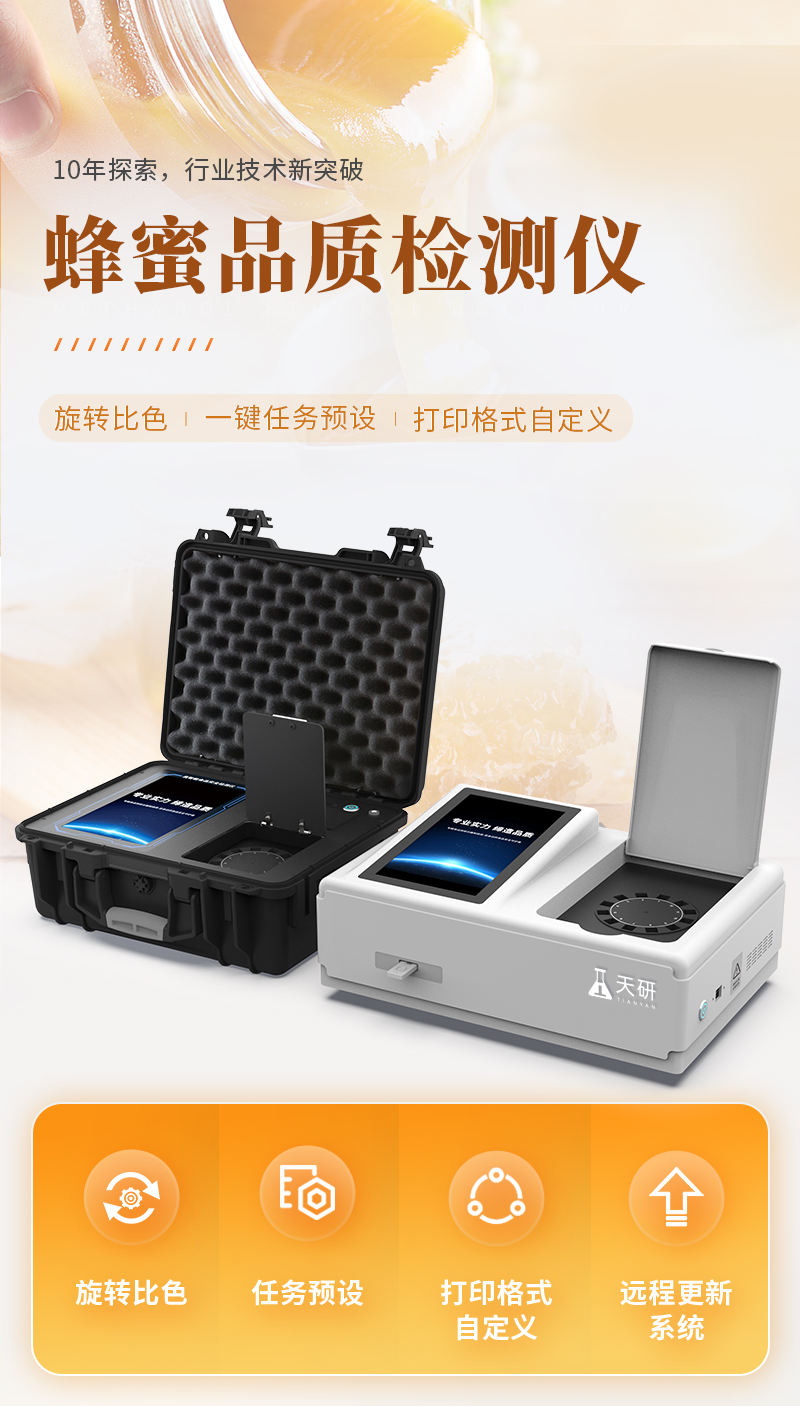 山東天研儀器有限公司生產的高智能蜂蜜檢測儀為集成化食品安全快速檢測分析設備,采用臺式一體化設計,可快速檢測200多種食品安全項目,包含非食用化學物質、濫用食品添加劑、農藥殘留、獸藥殘留、重金屬、病害肉、營養強化劑、抗生素類殘留、激素類殘留、真菌毒素類殘留、化學類殘留等項目的定性定量檢測。該高智能食品安全檢測儀為集成化食品安全快速檢測分析設備,目前已于食藥監局、衛生部門、高教院校、科研院所、農業部門、養殖場、屠宰場、食品肉產品深加工企業及檢驗檢疫部門等單位廣泛使用。