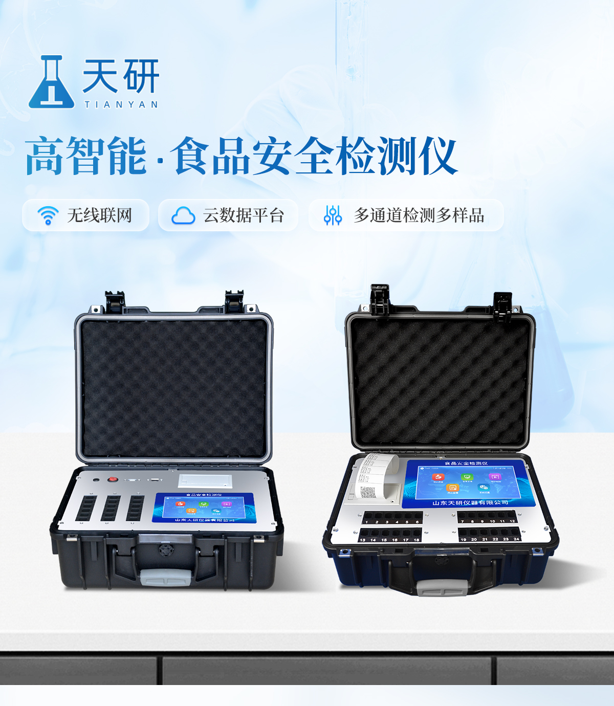 | 安卓智能操作系統,采用更加**的UI交互界面,儀器具有wifi聯網上傳、4G聯網傳輸、GPRS無線遠傳、網線連接功能,快速批量上傳數據。 | 智能化程度高,儀器具有自檢功能:具有開機自檢和調零功能,具有自動檢測重復性功能。 | 新一代高速熱敏打印機,檢測完成可自動打印或批量打印檢測報告和二維碼。 | 儀器帶有監管平臺,數據可局域網和互聯網數據上傳,檢測結果直接傳至食品安全監管平臺。進行區域食品安全監管及大數據分析處理與數據統計,檢測區域食品安全長短期動態,達到食品安全問題預估、預警 | 一體化主機,包含食品安全檢測模塊、多通道農藥殘留檢測模塊、膠體金免疫層析檢測模塊。 | 一體化便攜式快檢設備,滿足現場及流動檢測使用需求,能夠在同一軟件下實現所有檢測項目的檢測,并可通過同一窗口直觀顯示檢測結果。 | 膠體金模塊檢測方式:軌道式自動傳輸掃描,檢測完成后自動退出檢測卡。 | CT線自動識別,無需手動調整。 | 內置強大的數據庫,具有多品類多種類樣品菜單功能,可靈活選擇檢測樣品,不同的檢測通道可同時檢測不同的樣品項目。也可在儀器上直接編輯錄入樣品名稱、檢測指標、送檢單位等信息并保存進樣品數據庫。 | 產品內置操作演示視頻,是您身邊的化驗指導專家。 | 樣品處理簡單省力,整體操作快速、安全、便捷。 | 儀器具有自身保護功能,可設置用戶名及密碼,防止非工作人員操作等。 | 高靈敏度,高檢測精度,高重復性精度,掃描式高精度光學傳感器。 | 結果判定線可修改,對照值標定值可保存,斷電不丟失數據。 | 兼容市場上所有的膠體金卡,使用耗材不受限制,極大增強用戶使用體驗。 | 儀器具有重新校準、鎖定、恢復出廠設置功能。 |