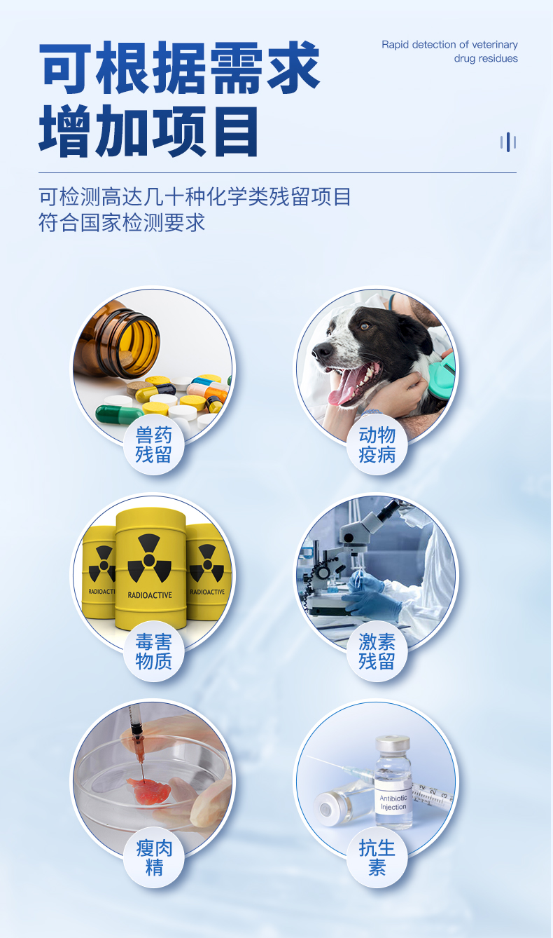 山東天研儀器有限公司生產的水產品安全檢測儀可適用于魚、蝦等水產中孔雀石綠、氯霉素、硝基呋喃類:呋喃唑酮(AOZ)、呋喃它酮( AMOZ )、呋喃妥因(AHD)、呋喃西林(SEM)、呋喃那斯、磺胺類、激素類、四環素類、金霉素、土霉素、甲砜霉素、氟苯尼考、喹諾酮類藥物:噁喹酸、諾氟沙星、恩諾沙星、環丙沙星、氧氟沙星等藥物殘留的定性檢測 該儀器廣泛應用于食藥監局、衛生監督部門、農業部門、商業系統養殖場、屠宰場、食品肉產品深加工企業、畜牧獸醫、檢驗檢疫部門、食品生產企業、農副產品批發市場、農業生產基地、超市、餐廳、高教院校、食堂等單位部門對食品中的不安全指標進行監測使用。