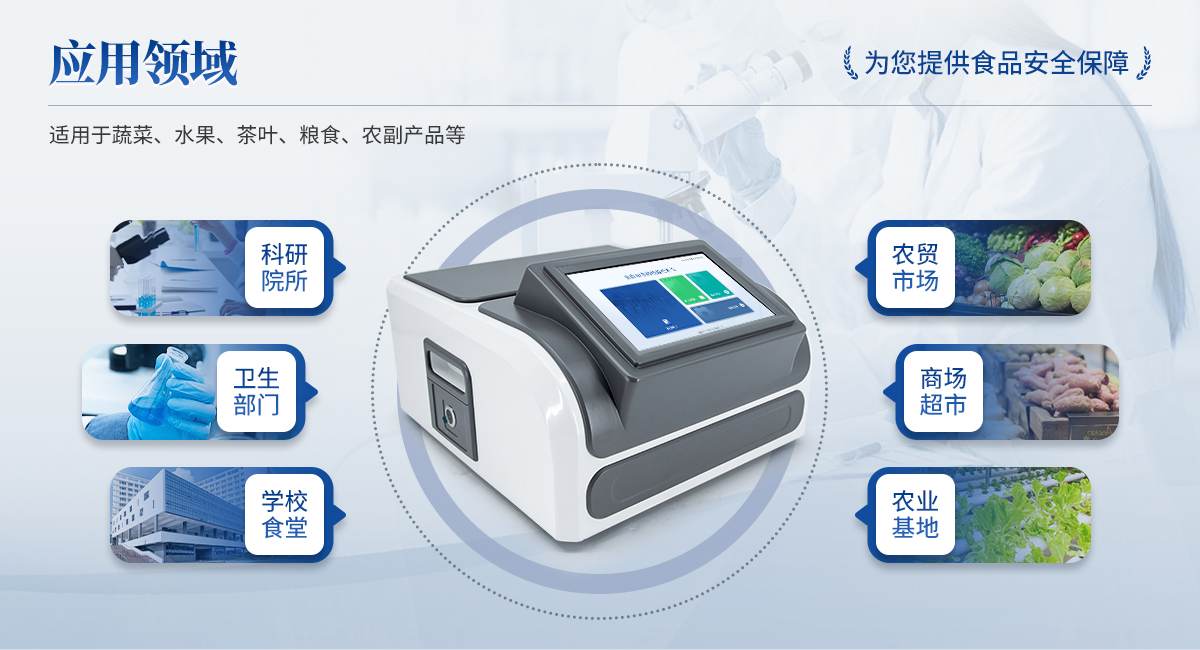 全自動農藥殘留檢測儀是依據國家標準方法(GB/T5009.199-2003),采用酶抑制率比色法對水果、蔬菜等農產品中有機磷和氨基甲酸酯類農藥含量進行快速準確的檢測。該設備廣泛應用于蔬菜批發市場、超市、商場、食藥監等部門的蔬菜和水果中的農藥殘留檢測。