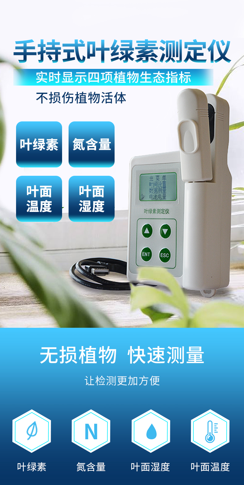 TY-YA植物葉綠素儀可以即時測量植物的葉綠素相對含量(單位SPAD)或“綠色程度”從而可以了解植物真實的硝基需求量并且幫助您了解土壤硝基的缺乏程度或是否過多地施加了氮肥。您可以通過這種儀器來增加氮肥的利用率,并可保護環境(防止施加過多的氮肥而使環境特別是水源受到污染)。