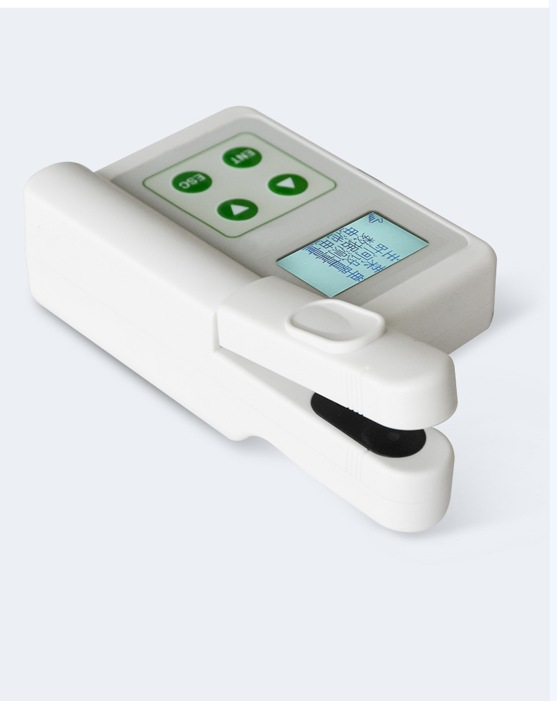(2)在壓頭夾住樣品后,兩個LED再次發光,通過葉片傳輸的光打到接收器上,被轉換成電信號,傳輸光的強度比率被計算。