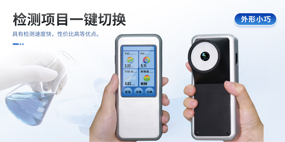 聯合中國農業大學彭彥昆教授團隊研發的掌上式生鮮肉新鮮度分析儀,可用于檢測生鮮肉的TVC、pH、TVB-N、新鮮度、L*、A*、B*等評價指標。Palmarter具有體積小、便 于攜帶、性價比高等特點,其應用場景包括但不限于肉儲運企業、肉品品質監管部門、飯店、超市、菜場、家庭等。