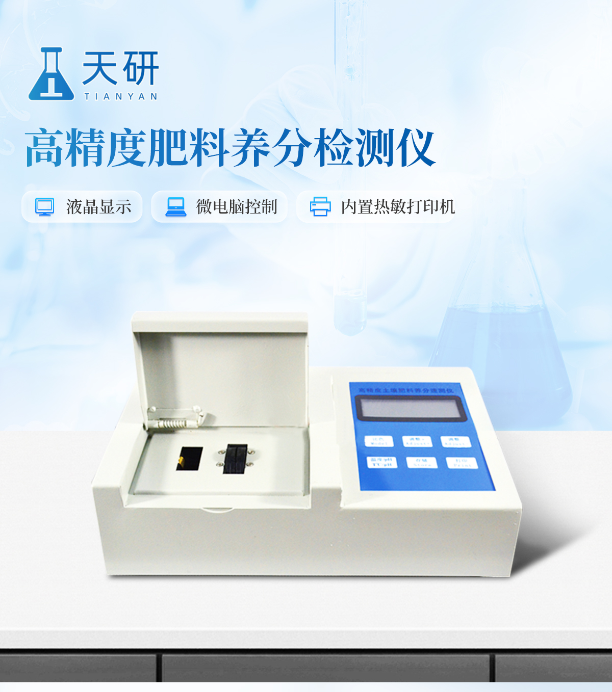 | 肥料養分:● 單質化肥中的氮、磷、鉀; ● 復(混)合肥及尿素中的銨態氮、硝態氮、磷、鉀、縮二脲; ● 有機肥(葉面肥)中速效氮、速效磷、速效鉀、全氮、全磷、全鉀、有機質,各種腐植酸等。可擴展檢測鈣、鎂、硫、鐵、錳、硼、鋅、銅、氯、硅等微量元素以及各種重金屬(鉛鉻鎘汞砷)。 |