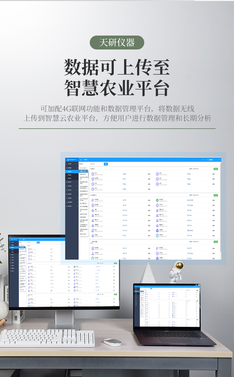 | 儀器可加配4G聯(lián)網(wǎng)功和能數(shù)據(jù)管理平臺,將本機存儲的被測點環(huán)境因子測量歷史數(shù)據(jù)無線上傳到智慧云農(nóng)業(yè)平臺,方便用戶進行數(shù)據(jù)管理和長期分析。 | 本機體積小巧、美觀,操作簡單方便,性能可靠,野外攜帶極為方便。主機連接傳感器后可以手動存儲記錄也可通過主機任意設置采樣間隔,自動存儲記錄數(shù)據(jù)。 | 大屏幕彩色液晶顯示屏,全程跟蹤記錄各個被測環(huán)境因子的數(shù)值、組數(shù)、低電壓示警,主機內(nèi)置大容量存儲器,可儲存三十萬條數(shù)據(jù),具有斷電數(shù)據(jù)自動存儲保護功能。 | 各個傳感器插入主機后,主機具有自動識別功能,傳感器一致性好,可按需求自行組合傳感器,不同參數(shù)的傳感器接口可以互相轉換,對測量精度沒有影響。 | 儀器具有多通道自動檢測擴展功能,可以實現(xiàn)多個傳感器同時接入的同步檢測。 | 上位機軟件功能強大,隨時可以通過USB接口將記錄中的數(shù)據(jù)導出到計算機上,并可以存儲為EXCE表格文件,生成數(shù)據(jù)曲線,以供其它分析軟件進一步進行數(shù)據(jù)處理。具有設置超限區(qū)域著色功能,超限數(shù)據(jù)變色預警,可作為環(huán)境評價的一個依據(jù)。 |
